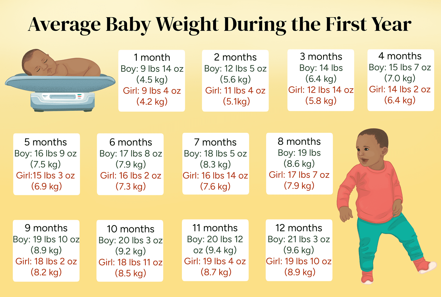 Baby normal weight charts for boys and girls (0-3 years)